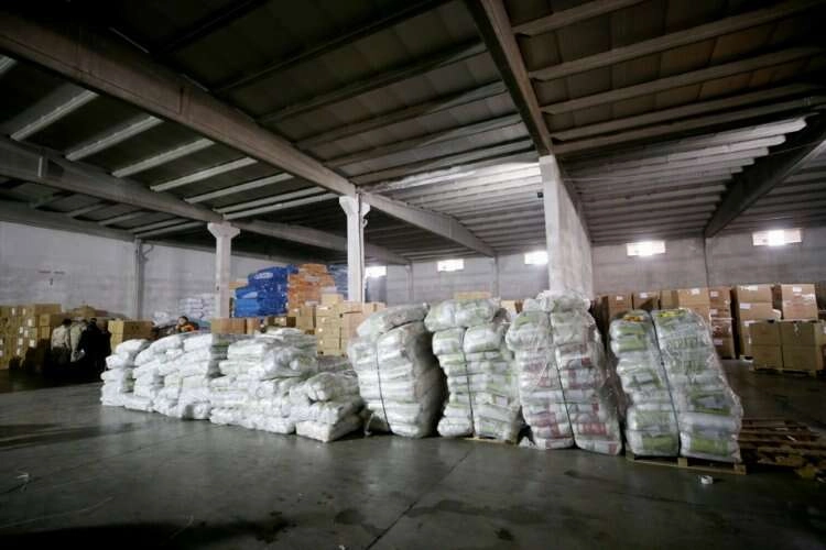 Kavaklı Organize Sanayi Bölgesi'ndeki yardım toplama merkezinde görevlilerce tasnif edilen 1000 tır yardımın ise dağıtımı sürüyor.
