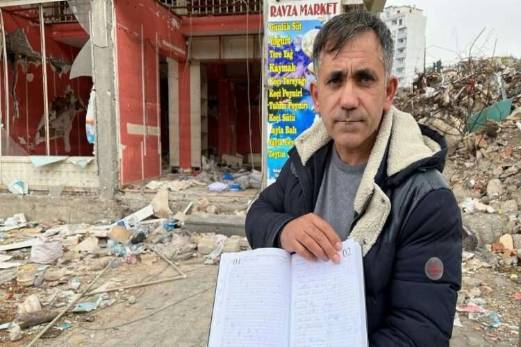 KAHRAMANMARAŞ (AA) - GÖKHAN ÇALI - Kahramanmaraş merkezli 6 Şubat'taki depremlerde en çok can kaybının yaşandığı yerlerden Ebrar Sitesi'nde 13 yıl market işleten Cuma Akgöz, veresiye defterini yırtarak kayıtlı borçları sildi.