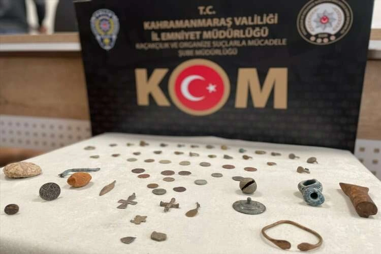 KAHRAMANMARAŞ (AA) - Kahramanmaraş'ın Pazarcık ilçesinde, yüzük, sikke ve mühürlerinde içinde bulunduğu tarihi eser niteliği olduğu sanılan 60 objeye el konuldu.
