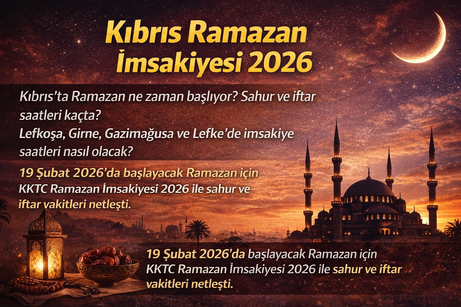 Kuzey Kıbrıs Türk Cumhuriyeti’nde (KKTC) yaşayan Müslümanlar, 19 Şubat 2026 Perşembe günü başlayacak Ramazan ayı için hazırlıklarını sürdürüyor. Kıbrıs Ramazan İmsakiyesi 2026 ile sahur ve iftar saatleri netleşti. KKTC’de yaşayan vatandaşlar özellikle “Kıbrıs’ta sahur saat kaçta?”, “İftar ezanı ne zaman okunacak?” sorularına yanıt arıyor.Gazimağusa, Girne, Lefkoşa, Lefke ve diğer şehirlerde sahur ve iftar vakitleri gün gün değişecek. Müslümanlar, imsaktan önce niyet ederek oruçlarını tutmaya başlayacak, iftar vakti geldiğinde ise dualar eşliğinde oruçlarını açacaklar.