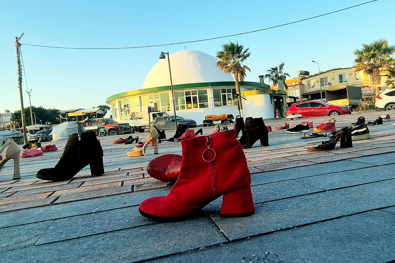 Kadına yönelik şiddete dikkat çekmek amacıyla anlamlı bir farkındalık etkinlik yapıldı. Rihen Kültür Sanat ve Dayanışma Topluluğu, Samandağ’daki Hz. Hızır Parkı’nda düzenlediği etkinlikte, erkekler tarafından öldürülen kadınları anmak için kırmızı ayakkabıları sergiledi. Topluluk üyeleri, Rihen’in simgesi olan yapraklar ve yakılan buhur eşliğinde maniler okuyarak kadın dayanışmasının gücünü gözler önüne serdi.