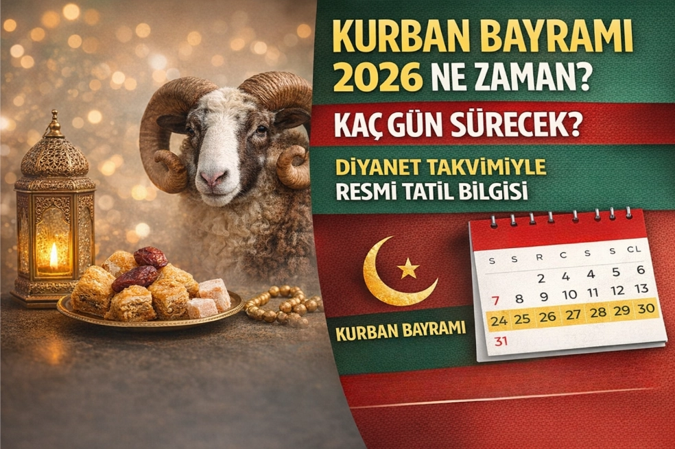 Kurban Bayramı 2026 tarihi merak ediliyor. Diyanet İşleri Başkanlığı takvimine göre 27 Mayıs 2026 Çarşamba günü başlayacak olan Kurban Bayramı, dört gün sürecek. Arife günü olan 26 Mayıs Salı ise yarım gün tatil sayılıyor. Bayramın 1. günü 27 Mayıs, 2. günü 28 Mayıs, 3. günü 29 Mayıs ve 4. günü 30 Mayıs’a denk geliyor.