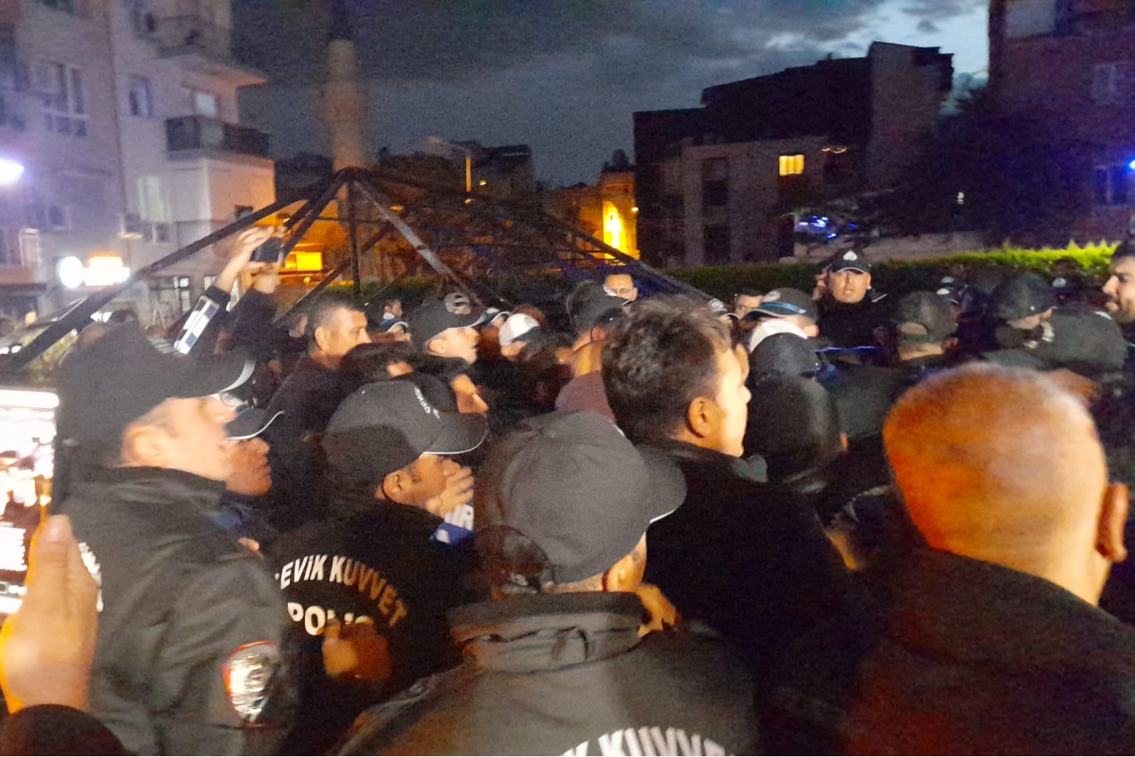Kuşadası’nda belediye hizmetlerinin aksamaması amacıyla kurulan çadırın Aydın Büyükşehir Belediyesi zabıtası tarafından kaldırılmak istenmesi, gerginliğe neden oldu. Kuşadası Belediyesi Meclis Üyesi Tümer Apaydın, yaptığı açıklamada, Kentli Hizmet Servisi ve Güvercin Masa’nın yeni yer bulunana kadar hizmetlerin devam etmesi için çadır kurduklarını belirterek, “Hiçbir resmi karar olmadan gece vakti çadırı sökmeye gelmek yanlış” dedi.