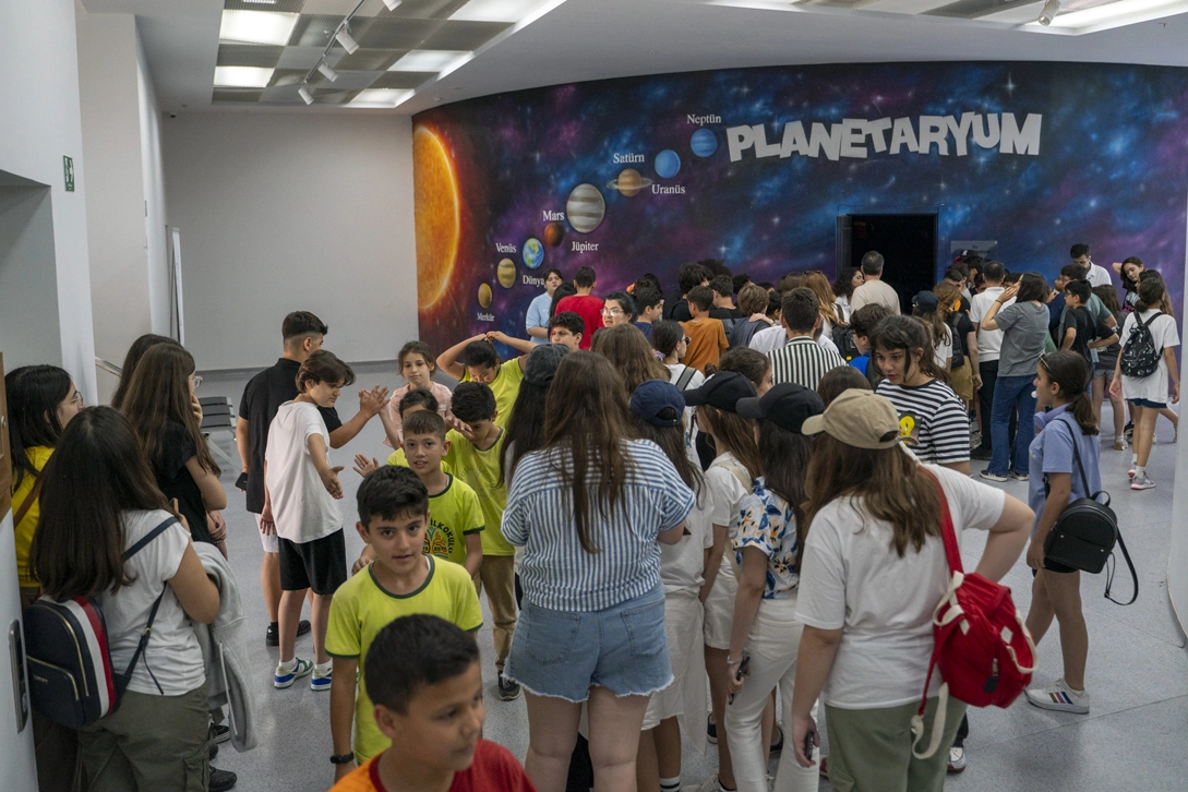 Türkiye’nin en büyük kapasiteli ve en büyük perde çapına sahip planetaryumunu da gören ziyaretçiler, merkeze olan hayranlıklarını ifade ediyor.