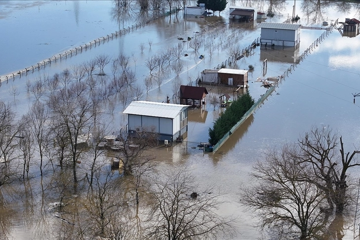 Edirne'de Kirişhane mevkisinde nehir, bazı bölgelerde yatağından çıkarak tarım arazileri ve çiftlik evlerinin olduğu bölgeye yayıldı.