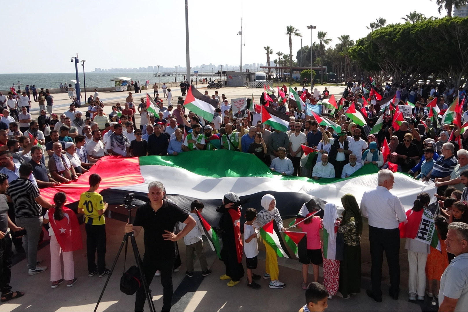 Mersin'de İsrail'in Gazze'ye yönelik saldırılarını protesto etmek ve Gazze'de yaşanan insanlık dramına dikkat çekmek amacıyla 'Büyük Gazze Mitingi' düzenlendi. Sivil toplum örgütlerince ‘Sen yaşarken Gazze ölüyor’ sloganıyla Özgecan Aslan Barış Meydanı'nda düzenlenen mitinge çok sayıda vatandaş katıldı. Kefiye takıp Filistin ve Türk bayrakları açan kalabalık, İsrail'i protesto eden dövizler taşıdı. Mitinge katılanların sık sık sloganlar attığı etkinlikte Kur'an-ı Kerim okundu. Etkinliğe vatandaşların yanı sıra AK Parti Mersin Milletvekili Ali Kıratlı da katılarak destek verdi. Mitingde konuşan Filistin Alimler Birliği Başkanı Nevaf Tekruri, "Bakın, bu siyonist İsrailliler var ya, gördüğünüz göreceğiniz en korkak ordulardır bunlar. Bu siyonist İsrailliler çocukları öldürüyorlar, hastaneleri bombalıyorlar, mescitleri bombalıyorlar, mazlum evlatları, ciğerparelerimizi koparıyorlar. Ama şunu iyi bilin ki, en korkak insanlar siyonist İsraillilerdir" dedi.