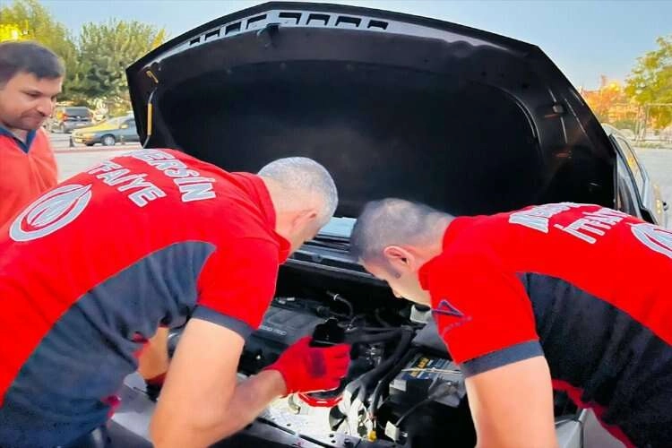 Notun ardından kontrol ettiği aracın motor kısmında kedi yavrusunu gören Alper, kendi imkanlarıyla hayvanı bulunduğu yerden çıkarmaya çalıştı.