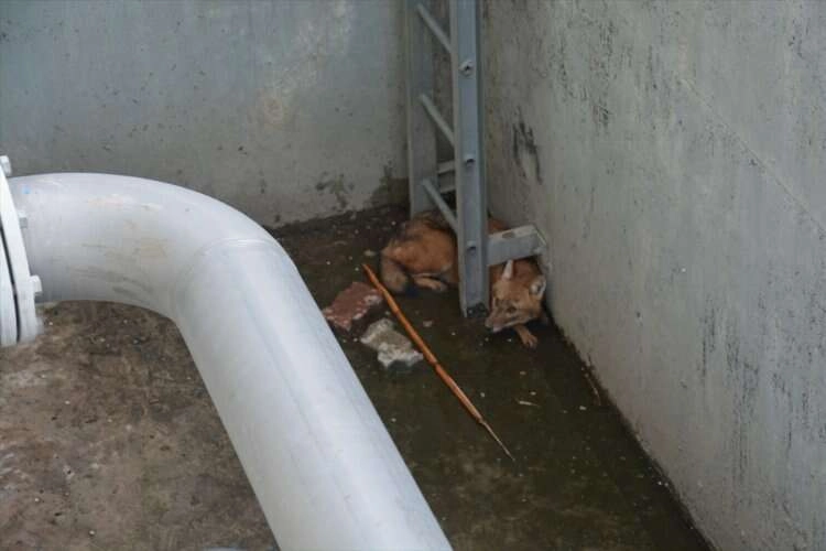 Büyükşehir Belediyesinden yapılan açıklamaya göre, Tarsus Karabucak Atıksu Arıtma Tesisi çalışanları çamur havuzları yanında bulunan boşluğa bir çakalın düştüğünü fark etti.