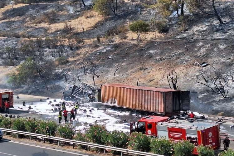 Çarpışmanın ardından yangın çıkan kamyondaki bazı tüpler patladı, alevler önce tıra sonrasında da yol kenarındaki ormanlık alana sıçradı.