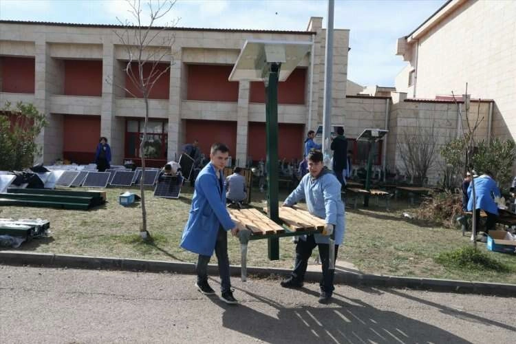 KAHRAMANMARAŞ (AA) - TUNAHAN AKGÜN/ GÖKHAN ÇALI - Ankara'daki Cezeri Yeşil Teknoloji Mesleki ve Teknik Anadolu Lisesi öğrencileri, "Asrın felaketi" olarak nitelendirilen ve 11 ili etkileyen deprem bölgelerindeki çadır kentlere güneş panelli bank kuruyor.
