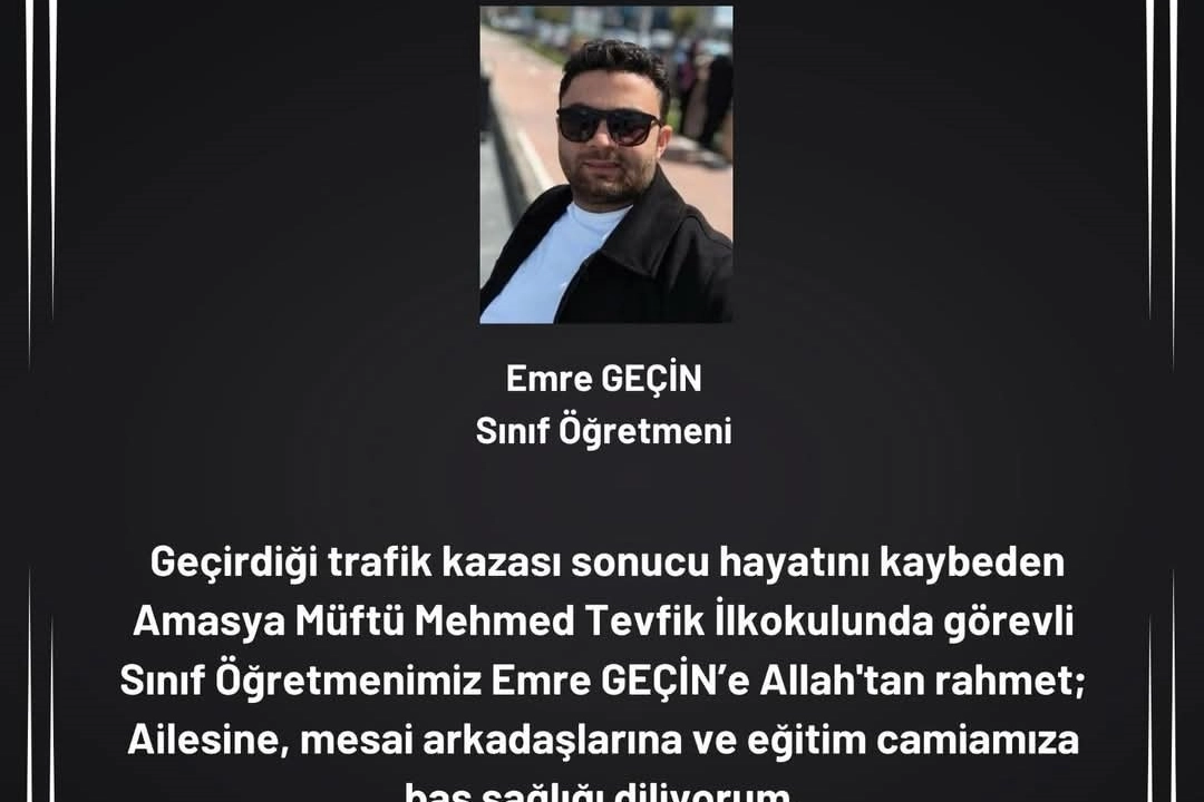 Amasya’da motosiklet kazası geçirdikten sonra tedavi altına alındığı hastanede 35 gündür yaşam mücadelesi veren öğretmen hayatını kaybetti. Geçtiğimiz 11 Nisan’da Sarılar köyü kavşağı mevkiinde yağış nedeniyle ıslanan yolda motosikletiyle geçirdiği trafik kazasında ağır yaralanarak kaldırıldığı hastanede yoğun bakım ünitesinde tedavi gören Müftü Mehmet Tevfik İlkokulu öğretmeni Emre Geçin (42), 35 günlük yaşam mücadelesini kaybetti. Evli ve 2 çocuk babası öğretmenin cenazesi, 17 Mayıs Cumartesi günü Suluova Hacı Mustafa Camii’nde öğle namazına müteakip kılınacak cenaze namazının ardından Suluova’da toprağa verilecek. Amasya Valisi Önder Bakan da, Geçin için başsağlığı mesajı yayınladı.
