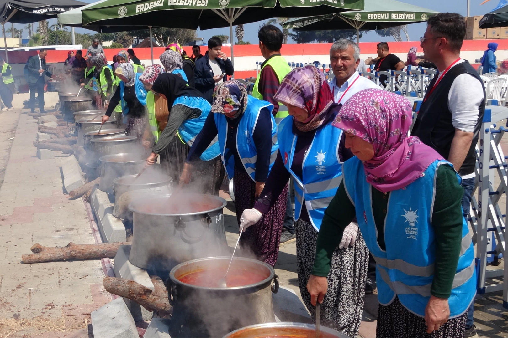 2026 yılının "Mevlid-i Nebi Yılı" olması vesilesiyle AK Parti Erdemli İlçe Teşkilatının koordinesinde gerçekleştirilen etkinlikte, 71 mahallemizden kadınlar dayanışma içinde örnek bir çalışmaya imza attı. Meydanda yakılan odun ateşindeki 71 kazanda; topalak, nohut, fasulye ve keşkek gibi yöresel lezzetler imece usulüyle hazırlandı. Dr. Devlet Bahçeli Meydanı'nda sahil şeridinde pişirilen yemekler, programa katılan yaklaşık 10 bin kişiye sunuldu. Duaların edildiği etkinlik, sanatçı Celal Karatüre'nin seslendirdiği ilahilerle devam etti.