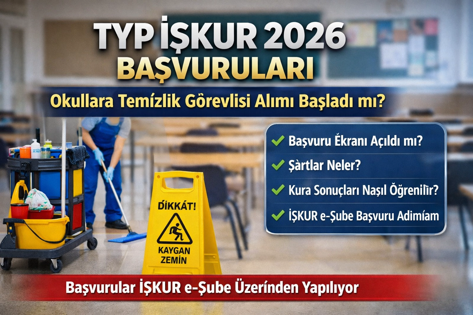 TYP İŞKUR OKULLARA TEMİZLİK GÖREVLİSİ ALIMI 2026 BAŞLADI MI?İŞKUR tarafından yürütülen TYP personel alımı başvuruları, illere ve ilçelere göre farklı tarihlerde yayımlanıyor. 2025-2026 eğitim öğretim yılının ikinci yarısının başlamasıyla birlikte birçok ilde TYP ilanları duyurulmaya başlandı.