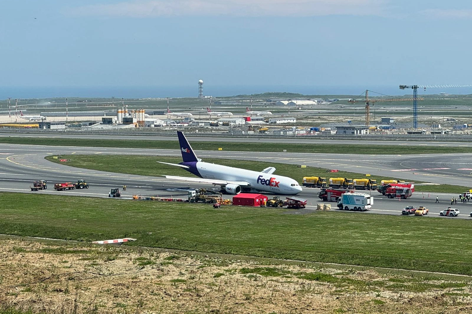 Dün sabah saatlerinde FedEx’in Paris’ten gelen Boeing B767 tipi kargo uçağının ön iniş takımlarında hidrolik arızası meydana gelmiş ve uçağın ön iniş takımı İstanbul Havalimanı'na inişi sırasında açılmamıştı. Pilotlar, uçağın ön iniş takımları açılmadan iniş gerçekleştirmişti. FedEx uçağı, yapılan başarılı çalışmalar sonucu pistten çekildi ve pist temizlendi.