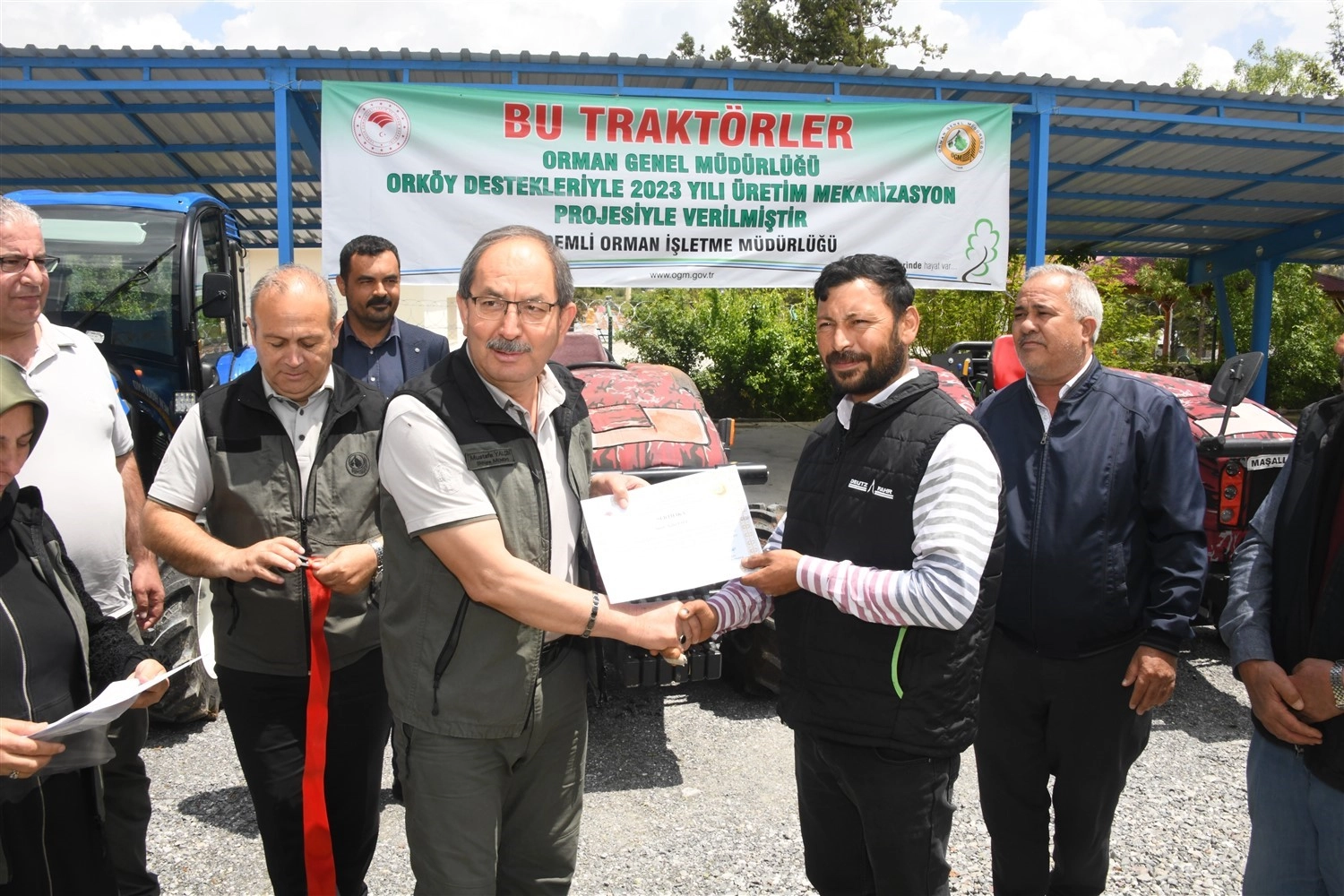Bu çerçevede 16 aileye süt koyunculuğu, 22 aileye süt sığırcılığı, 3 aileye fenni arıcılık, 8 aileye örtü altında serada erik üretimi seracılığı, 53 aileye traktör, 17 aileye motorlu testere, 2 aileye tambur olmak üzere 121 aileye ORKÖY desteği sağlandığı kaydedildi. Mersin Orman Bölge Müdürü Mustafa Yalçın, Tarım ve Orman Bakanlığı ile Orman Genel Müdürlüğünün hedef ve politikaları çerçevesinde, ORKÖY bütçesinin her yıl arttırıldığına işaret ederek, "2023 yılında Bölge Müdürlüğümüzün ORKÖY destekleri yüzde 93 arttırılarak 34 milyon 993 bin TL’ye çıkarıldı. Bölge Müdürlüğümüzdeki üretim-mekanizasyon taleplerinin tamamı karşılandı. Orman köylerimizde istihdama katkı sağlayarak kırsal kalkınmanın lokomotifi olmaya devam ediyoruz. 2024 yılında da desteklerimiz artarak devam edecek. ORKÖY kredilerinden yararlanan tüm köylülerimize hayırlı olması dileklerimle emeği geçen tüm personelimize teşekkür ederim” dedi.