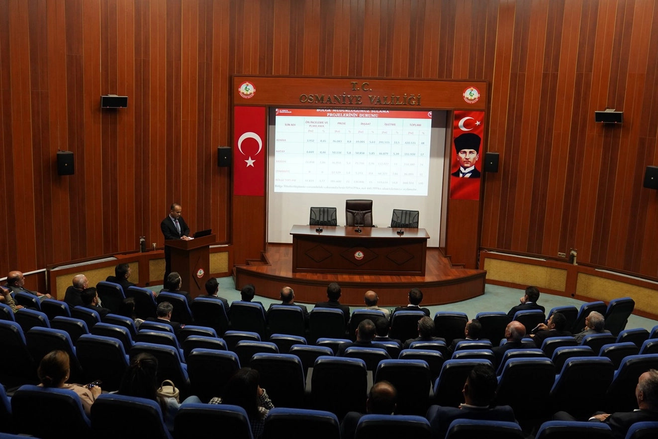 Osmaniye Valiliği tarafından, ildeki tarımsal kuraklıkla mücadele ve su kaynaklarının verimli kullanılması amacıyla Tarımsal Kuraklık İl Kriz Merkezi Değerlendirme Toplantısı düzenlendi. Toplantıya, Osmaniye Vali Yardımcısı Aziz Onur Aydın başkanlık ederken, yerel yönetim yetkilileri ve ilgili kamu kurum temsilcileri katıldı.