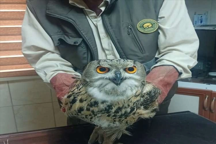 OSMANİYE (AA) - Osmaniye'de bitkin halde bulunun puhu, Doğa Koruma ve Milli Parklar Müdürlüğü ekiplerine teslim edildi.