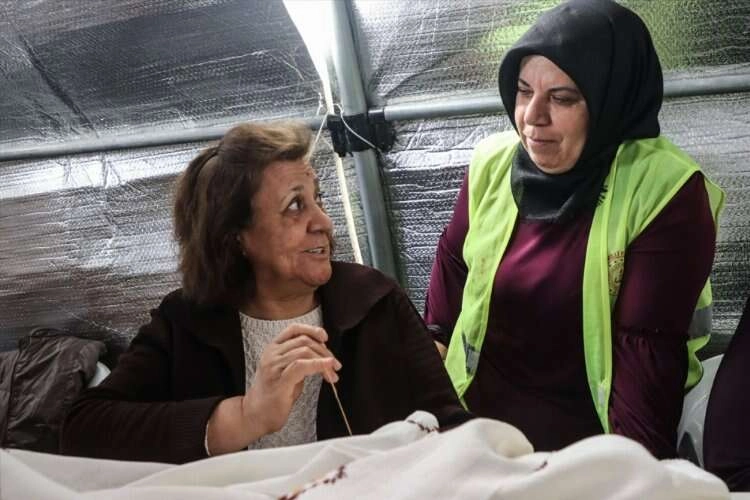 OSMANİYE (AA) - MUSTAFA ÜNAL UYSAL/MUZAFFER ÇAĞLIYANER - Kahramanmaraş merkezli 6 Şubat'taki depremlerden etkilenen Osmaniye'de kadınlar, afet travmasını atlatmak için çadır kentte açılan el sanatları kurslarına katılıyor.