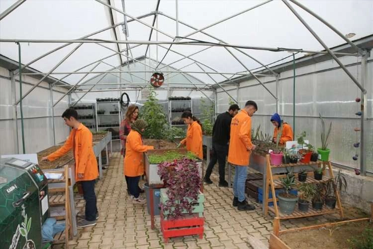 Milli Eğitim Bakanlığınca "Sıfır Atık" projesi kapsamında gönderilen kompost makinesiyle de geri dönüşümü öğrenen çocuklar, meyve, sebze, çay posası ve yumurta gibi atıkları makinede gübreye dönüştürüp üretimde kullanıyor.