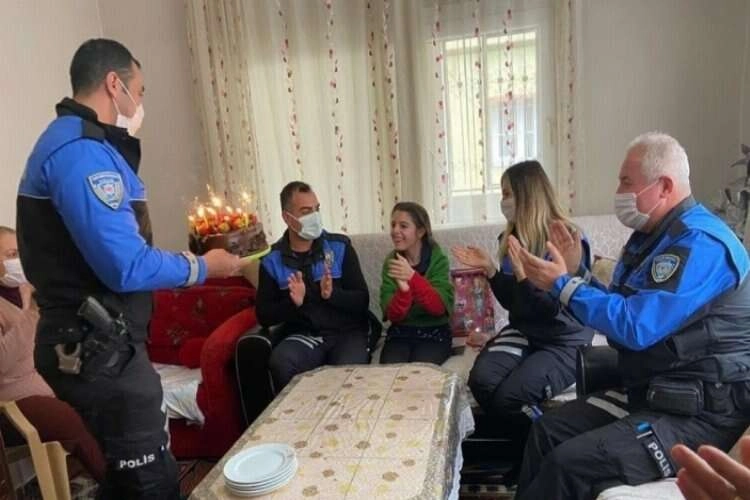 Mumları üfleyen Fulya, kendisinin de polis olmak istediğini, polisleri çok sevdiğini, çok mutlu olduğunu söyledi. Polis yaş pastayı kesip, kendi elleriyle engelli kıza ikramda bulundu.