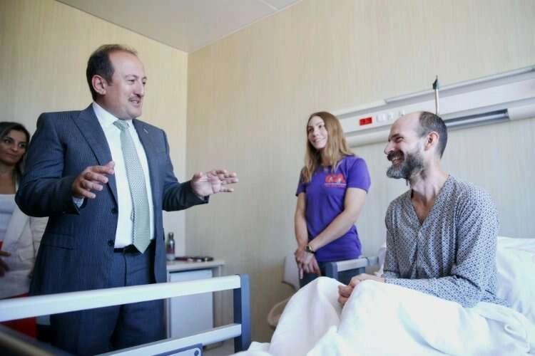 "Burası donanım olarak son derece üst seviyede bir hastanemiz ve Türkiye'mizin biliyorsunuz ilk şehir hastanelerinden birisi. Biraz önce doktorlarımızdan bilgi aldık, medikal tedavisi, tetkikleri de bir yandan devam ediyor. Kendisiyle de konuştuk. İyi hissettiğini ve giderek de daha iyiye gittiğini kendisi de doktorlarımız da ifade etti. Bir süre burada, hastanemizde misafir edilecek. Tedavisi sürecek ve ondan sonra da tabi doktorlarımızın takdiriyle taburcu işlemleri gerçekleştirilecek."