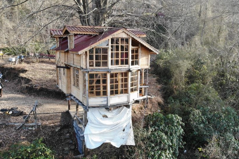 Tamamen ahşaptan yapılan evi hiçbir ustanın yardımı olmadan kendi emekleriyle yaptığına vurgu yapan Ali Hamdi Uzunhasanoğlu, “Emekli olduktan sonra hobi olarak arıcılık ve inşaat işleriyle uğraşıyorum. İnşaat işlerini çok seviyorum ve bu işlere hala devam etmekteyim. Bana diyorlar ki sen inşaat sektöründe doktorsun. Ben inşaat doktoruyum. Ben bir gün buraya geldim. Böyle durdum burada. Dedim burada her tarafı görmek şartıyla bir kamelya düşündüm. Her tarafı cam olacaktı be burada kar yağarken ben uzandığım yerden manzarayı seyretmeyi düşündüm. Burada yapıya başladım. Önce bir tarafını yaptım. Yukarı çıktım ve baktım manzara çok güzel. Dedim bu böyle olmayacak. Ben bunu daha detaylı bir şey yapayım. Bir tarafını bir tarafını daha yaptıktan sonra düşündüm ki bu da yetmez. Bu sefer diğer tarafının inşasını da yaptım. Ondan sonra içinin donatımına başladık. Evi bu şekle soktuk. Şimdi bu gördüğümüz evde hiçbir usta gelip çivi çakmamıştır. Hep kendim yaptım. Kafamda hayal edip uygulamayı keserle yapıyorum. Şimdi bana komşularım geldi. Dediler ki, ‘Ali Hamdi buraya bu evi niye yaptın? Burada düzgün bir alanın var. Burada niye yapmadın’ Bende, ‘Düz bir alanda her yerde ev var. Herkes yapar. Önemli olan kimsenin yapmadığı bu cazibeli evi yapabilmek’ dedim. Ağır ağır ilerliyorum. İnşallah ömrüm yeterse kiralamayı da düşünüyorum” ifadelerini kullandı.