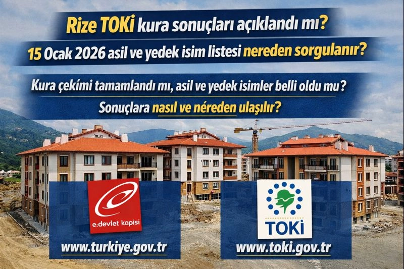 Rize TOKİ sosyal konut kura sonuçları 15 Ocak 2026 Perşembe günü yapılan çekilişin ardından gündemin en çok araştırılan konuları arasında yer aldı. 55, 65 ve 80 metrekare 1+1 ve 2+1 TOKİ evleri için başvuru yapan binlerce vatandaş, “TOKİ Rize kura sonuçları açıklandı mı, asil ve yedek isim listesi nereden öğrenilir?” sorularına yanıt arıyor.