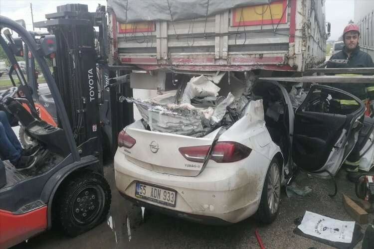 SAMSUN (AA) - Samsun'un Çarşamba ilçesinde park halindeki tıra arkadan çarpan otomobilin sürücüsü yaşamını yitirdi, araçtaki çocuk yaralandı. Ali D'nin (38) kullandığı 55 ADN 933 plakalı otomobil, Samsun Ordu kara yolu Ambar köyü mevkisinde kontrolden çıkarak yolun sağında park halindeki 42 RJ 360 plakalı tırın römorkuna çarptı. Römorkun altına giren otomobilin sürücüsü kaza yerinde hayatını kaybetti. Araçta bulunan sürücünün 8 yaşındaki kızı S.N.D. ise yaralandı. Sağlık ekiplerince Çarşamba Devlet Hastanesi’ne kaldırılan çocuk, tedavi altına alındı.