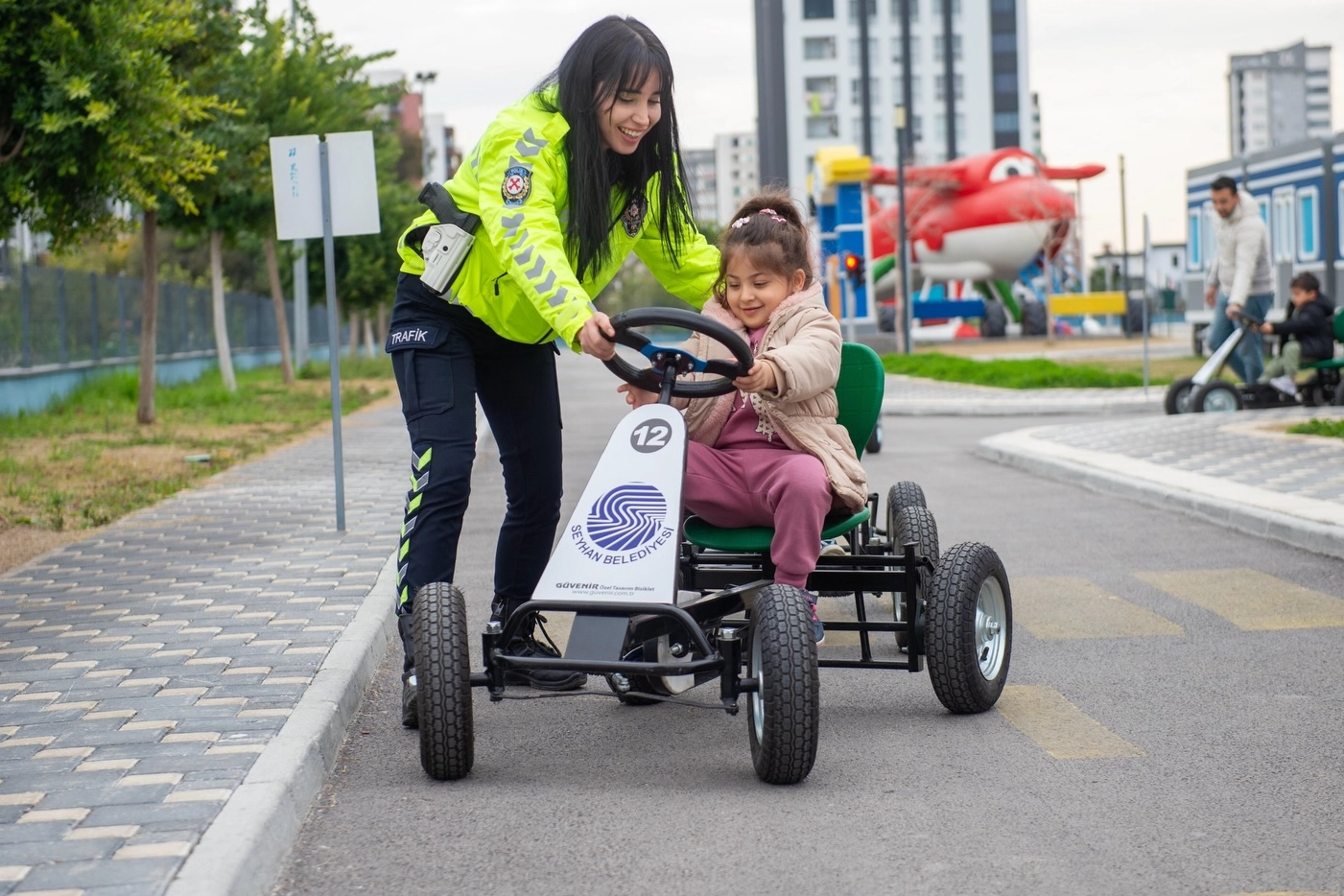 Seyhan Belediyesi, çocuklara erken yaşta trafik bilinci kazandırmak amacıyla hayata geçirdiği Trafik Parkı ile geleceğin bilinçli bireylerini yetiştirmeyi sürdürüyor. Parkta oluşturulan özel eğitim alanında çocuklar; yaya geçitleri, trafik ışıkları ve yönlendirme levhalarıyla donatılmış parkurda trafik kurallarını eğlenerek ve uygulamalı şekilde öğrenme imkânı buluyor. Minikler, hem yaya hem de sürücü bakış açısıyla kurallara uymanın önemini deneyimleyerek sabırlı olmayı, dikkatli hareket etmeyi ve güvenli davranış alışkanlıklarını küçük yaşta kazanıyor. Eğitimler kapsamında karşıdan karşıya geçerken dikkat edilmesi gereken hususlar, trafik ışıklarının anlamları ile yayaların ve sürücülerin sorumlulukları uygulamalı anlatımlarla aktarılıyor. Bu sayede çocuklar, günlük yaşamda karşılaşacakları trafik ortamına bilinçli ve güvenli bir şekilde hazırlanıyor.