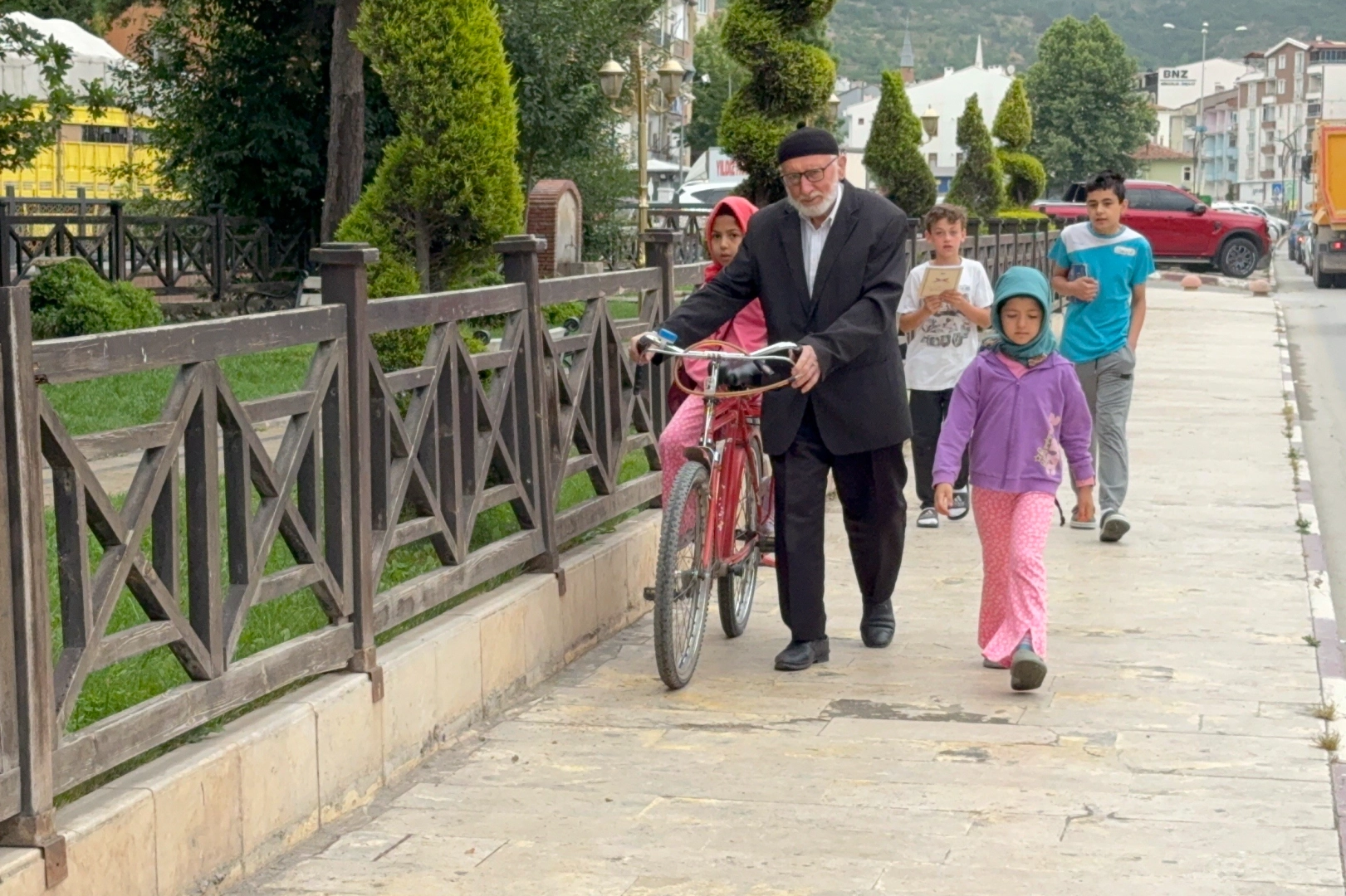 Tokat’ta yaşayan 79 yaşındaki emekli din görevlisi Yavuz Kaya, Kur’an-ı Kerim öğrenmeleri için 8 yaşındaki Hafsa Sultan Kaya ve 5 yaşındaki Şeyma Kaya isimli torunlarını her gün bisikletiyle Behzat Camii’ne götürüyor. Küçük torununu bisikletin ön kısmına oturtan Kaya, diğer torunuyla birlikte yürüyerek camiye ulaşıyor. Torunlarını camiye teslim ettikten sonra yeniden bisikletine binen Kaya, evinin yolunu tutuyor.