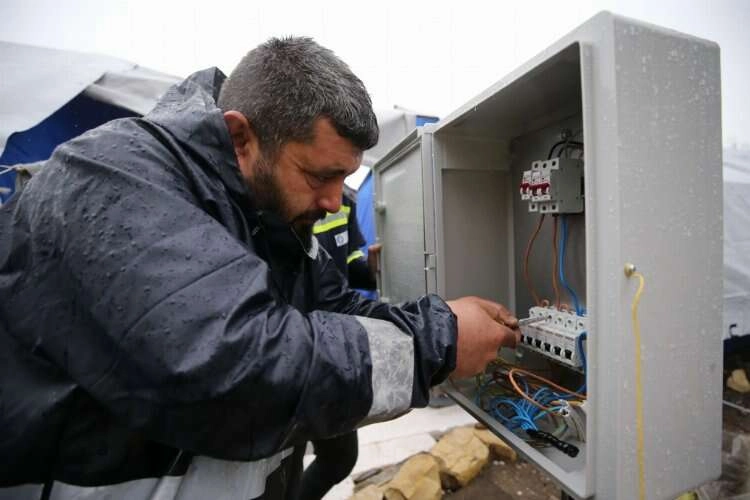 Çadır kentlerde aydınlatma sistemlerinin kurulması ve bakımı görevini üstelenen ekipler, aynı zamanda çadırlarda kullanılan lamba, ısıtıcı ve elektronik aletler için enerji akışını sağlıyor.