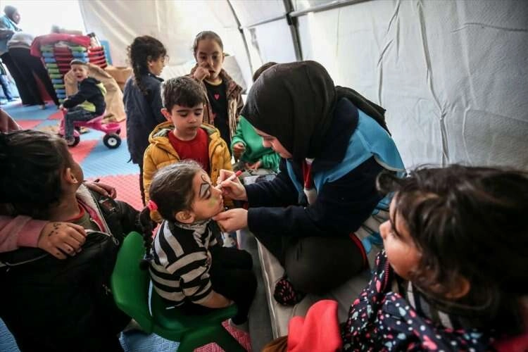 Özellikle çadır kentlerde ve konteynerlerin bulunduğu alanlarda çadırlar oluşturan TÜGVA gönüllüleri, depremin çocuklar ve anneler üzerindeki olumsuz etkilerini bir nebze olsun azaltmaya çalışıyor.