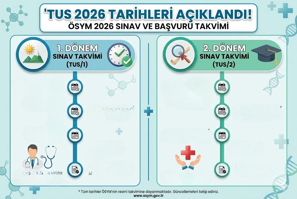 BAŞVURU TARİHLERİ:TUS 1. Dönem: 28 Ocak – 5 Şubat 2026