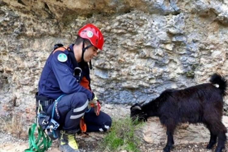 İtfaiye Dairesi Başkanlığı Afet Arama ve Kurtarma Şube Müdürlüğünce yapılan çalışma sonucunda, kayıp keçilerin 50 metrelik uçurumda mahsur kaldığı belirlendi.