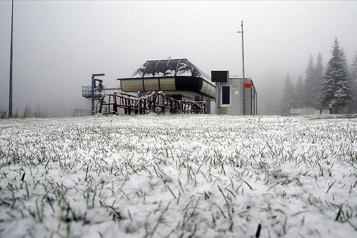 Türkiye'nin önemli kayak ve kış turizm merkezlerinden Uludağ'da mevsimin ilk kar yağışı başladı.
