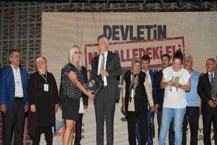 Başkan Zeydan Karalar’ın konuşmasının ardından muhtarlara bilgisayarlarını teslim etti.