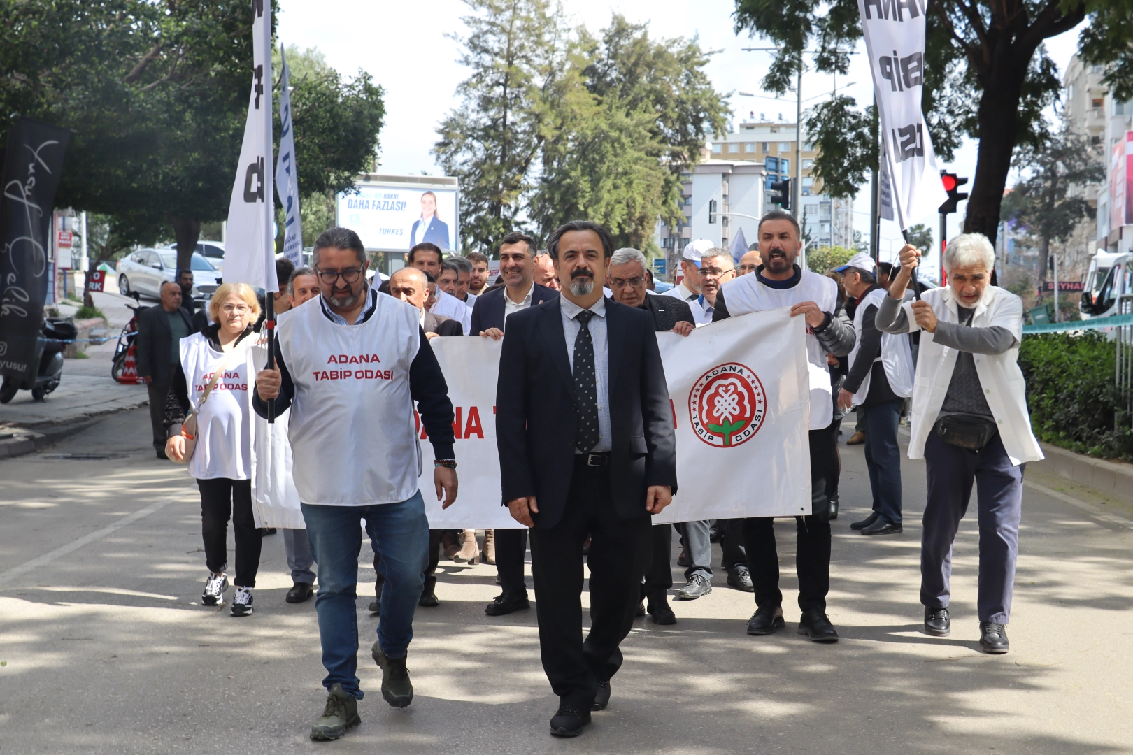 Yürüyüşte Adana Tabip Odası Başkanı Dr. Ahmet Suntur başta olmak üzere; TMMOB Adana İl Koordinasyon Kurulu Sekreteri Ahmet Uncu, CHP Adana İl Başkanı Anıl Tanburoğlu da katıldı.