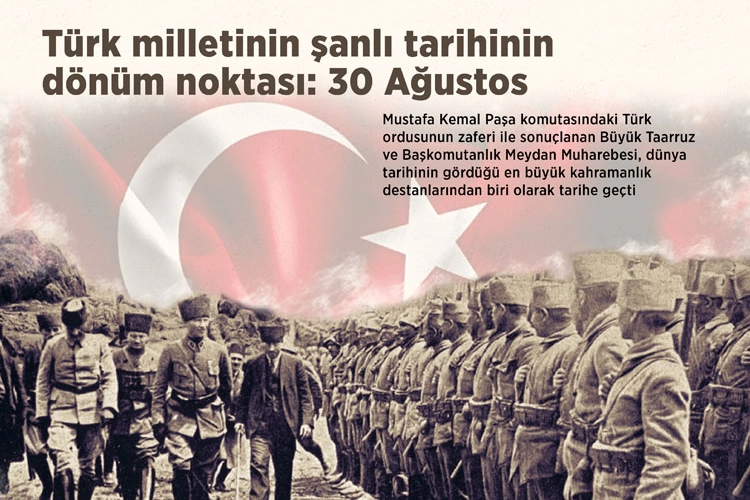 Türk milletinin bağımsızlık mücadelesinde kritik bir dönemeç olan 30 Ağustos Zaferi, Büyük Taarruz ve Başkomutanlık Meydan Muharebesi ile taçlandı. Mustafa Kemal Atatürk’ün bizzat Zafertepe’den yönettiği savaşta, Yunan ordusu dört bir yandan kuşatılarak büyük ölçüde yok edildi veya esir alındı. Aynı gün Türk birlikleri Kütahya’yı geri alarak stratejik bir başarı elde etti. 30 Ağustos’un tarihi önemi ve detayları haberimizde…