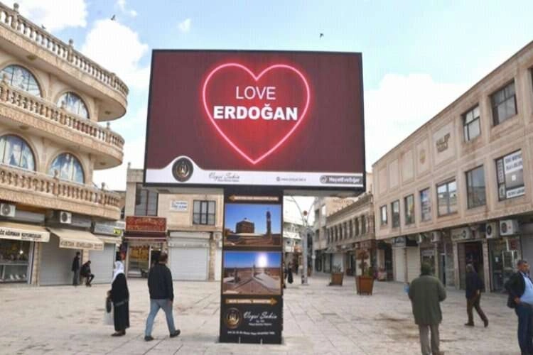 ABD'nin New York kentinde geçtiğimiz günlerde verilen "Stop Erdogan" yazılı skandal bir ilan yayınlanmasının ardından, Midyat Belediye Başkanı Veysi Şahin'in talimatıyla şehirde bulunan led ekranlara da beş dilde “Erdoğan’ı seviyorum” yazısı yansıtıldı.