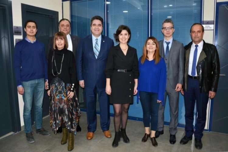 ADANA (İLKHABER) - Adana Anadolu Liseliler Eğitim Vakfı (ALAEV) Başkanı Tuğana Akbaş, Genel Sekreter Hüseyin Atıcı, Üyeler Füsun Ersalan, Burcu Şire, Enes Kocamaz ve Ahmet Doğan ile birlikte Adana Eczacı Odası (ADEO) başkanlığına seçilen okul arkadaşları Ecz. Ö. Mürsel Yalbuzdağ’a hayırlı olsun ziyaretinde bulundular.