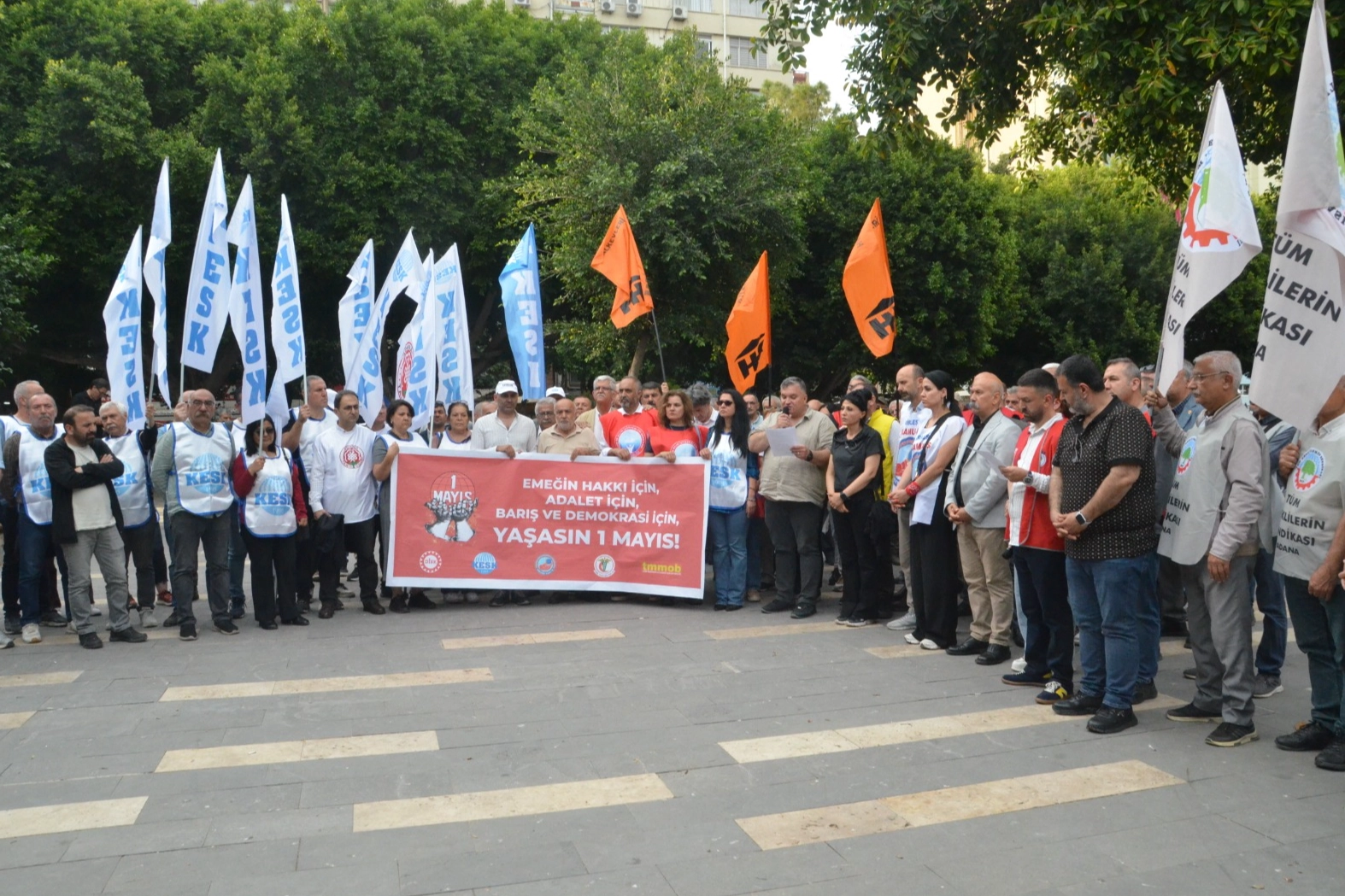 Adana’da 1 Mayıs İşçi Bayramı kapsamında sendikalar ve meslek örgütleri ortak bir açıklama yaparak vatandaşları düzenlenecek mitinge davet etti. Seyhan ilçesindeki İsmet İnönü Parkı’nda bir araya gelen Türkiye Devrimci İşçi Sendikaları Konfederasyonu (DİSK), Kamu Emekçileri Sendikaları Konfederasyonu (KESK), Türk Mühendis ve Mimar Odaları Birliği (TMMOB) ve Türk Tabipleri Birliği (TTB) temsilcileri, Tertip Komitesi adına açıklamayı DİSK 1 No’lu Şube Başkanı Ersoy Kalik okudu. Kalik, 1 Mayıs günü saat 13.00’te Cevat Yurdakul Caddesi’nde toplanılacağını, ardından saat 14.00’te Uğur Mumcu Meydanı’na yürüyüş gerçekleştirileceğini ve burada işçilerin taleplerinin dile getirileceği mitingin yapılacağını belirtti.