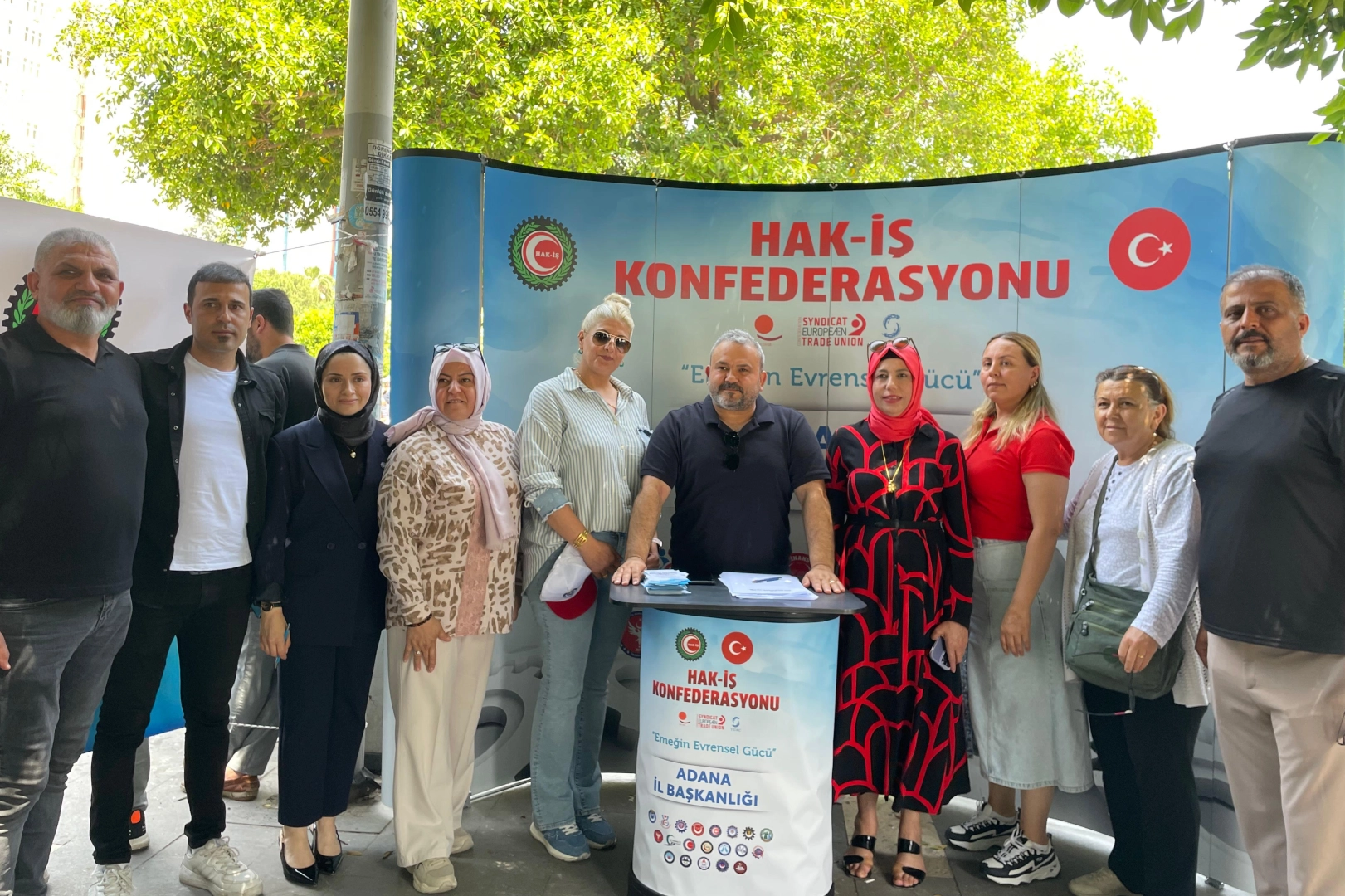 HAK-İŞ Konfederasyonu’na bağlı Hizmet İş Sendikası, ev hizmetlerinde çalışanların kayıtlı istihdama dahil edilmesi için yürüttüğü çalışmalarını Adana’da düzenlediği imza kampanyasıyla sürdürdü. İnönü Parkı’nda açılan stantta vatandaşlar, ev işçilerinin çalışma koşullarının iyileştirilmesi ve yasal haklara kavuşması için hazırlanan bildiriyi imzalayarak destek verdi. HAK-İŞ Konfederasyonu Adana İl Başkanı ve Hizmet İş Sendikası Adana Şube Başkanı Bekir Hakan Durna, ev işçilerinin İş Kanunu kapsamına alınması ve sosyal güvenlik sistemine entegrasyonu için mevzuat değişikliğinin şart olduğunu vurgulayarak, “İki temel hedefimiz var: Birincisi, ev işçilerini kayıt dışı çalışmadan çıkararak kayıt altına almak. İkincisi ise onların yaşam ve çalışma koşullarını insan onuruna yakışır hale getirmek” dedi.