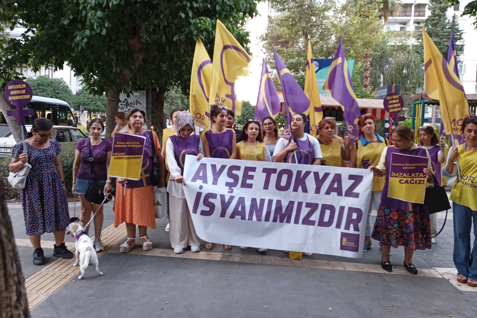 Adana’da Mor Dayanışma üyesi kadınlar, İstanbul’da erkek arkadaşı tarafından öldürülen Ayşe Tokyaz için Gazipaşa Çocuk Parkı’nda basın açıklaması yaptı. Açıklamaya çok sayıda kadın katıldı. Açıklamayı katılanlar adına Seren Canbolat okudu.