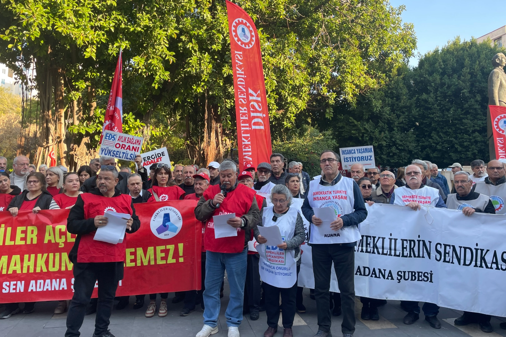 Adana'da emekliler taleplerini kamuoyuna duyurmak için bir araya geldi. Vatandaşlar, Atatürk Parkı'nda toplanarak İnönü Parkı'na kadar yürüyüş gerçekleştirdi. Etkinliğe CHP İl Başkanı Anıl Tanburoğlu, Ramazan Atikarslan, Çukurova Belediye Başkan Yardımcısı Nazlı Pınar Ünlü ve çok sayıda emekli katıldı. Ortak basın açıklamasını DİSK Emekli-Sen Bölge Temsilcisi Veli Ersoy okudu.