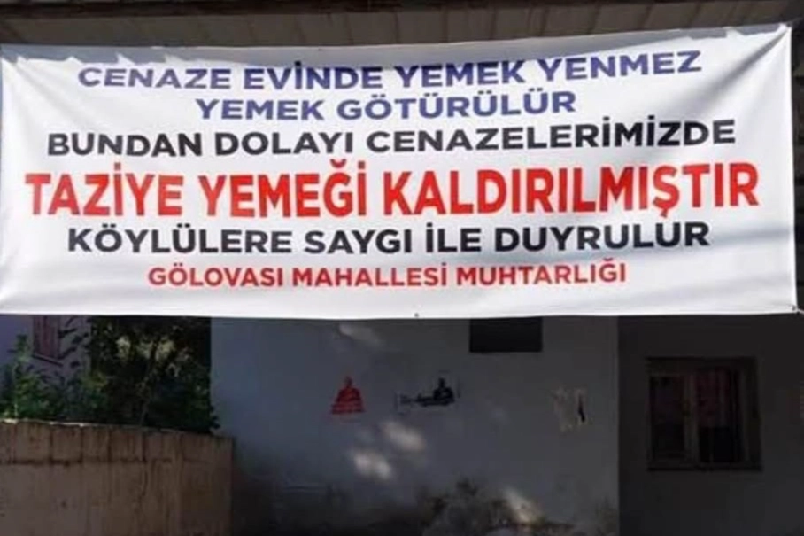 “Gölovası’nda taziye yemeği kaldırıldı”Gölovası Mahallesi Muhtarlığı’ndan yapılan açıklamada, “Cenaze evinde yemek yenmez yemek götürülür. Bundan dolayı cenazelerimizde taziye yemeği kaldırılmıştır köylülere saygı ile duyurulur” ifadelerine yer verildi.