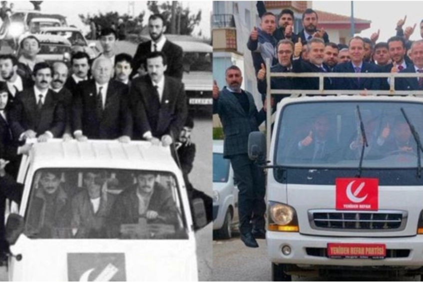 Yeniden Refah Partisi Genel Başkanı Fatih Erbakan, babası Necmettin Erbakan'ın simgeleşen 'kamyon kasası' fotoğrafını tam 30 yıl sonra yeniden uyarladı. Ankara Pursaklar Seçim Koordinasyon Merkezi açılışında kamyon üstünde çekilen fotoğraf, parti yetkilisi Mehmet Fatih Uğurlu tarafından "30 yıl sonra yeniden geliyoruz" ifadeleriyle paylaşıldı. Fotoğrafta Fatih Erbakan'ın yanı sıra Ankara Büyükşehir Belediyesi başkan adayı Suat Kılıç ve Yeniden Refah Partisi'nin ileri gelenleri yer aldı. 1994'teki tarihi fotoğrafta ise Refah Partisi Genel Başkanı Necmettin Erbakan, o dönem İstanbul Büyükşehir Belediyesi başkan adayı olan Recep Tayyip Erdoğan ve partinin önde gelen isimleri bir kamyon kasasında görülmüştü.