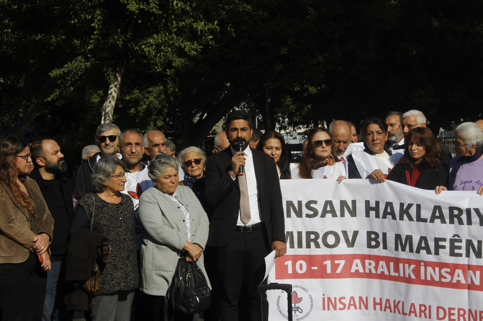 İnsan Hakları Evrensel Bildirgesi’nin kabul edilişinin 76. Yılı için İsmet İnönü Parkı’nda basın açıklaması yapıldı. Açıklamayı, İnsan Hakları Derneği (İHD) Adana Şube Başkanı Av. Yakup Ataş okudu. Av. Ataş, açıklamasında, “İnsan Hakları Evrensel Bildirgesi'nin kabul edilişinin 76. yılında, tüm insanlık olarak, eşitlik ve onur temeline dayalı hakların savunulmasının önemini vurguluyoruz. Bugün, eşitsizlik, adaletsizlik, yoksulluk, ayrımcılık ve savaşa karşı kararlılıkla barış, demokrasi ve insan hakları değerlerini savunuyoruz” dedi.