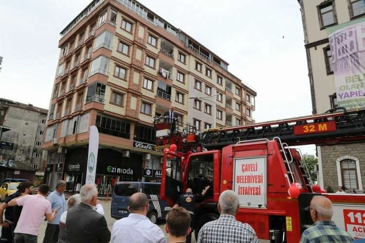 Çayeli Belediyesi tarafından envantere kazandırılmak üzere itfaiye aracı siparişi verildi. Uzun süre bekleyen belediye, sonunda bugün itfaiye aracına kavuştu. Makine parkına eklenen 32 metre uzunluğu olan merdivenli itfaiye aracı için Çayeli Belediyesi önünde tören düzenlendi.