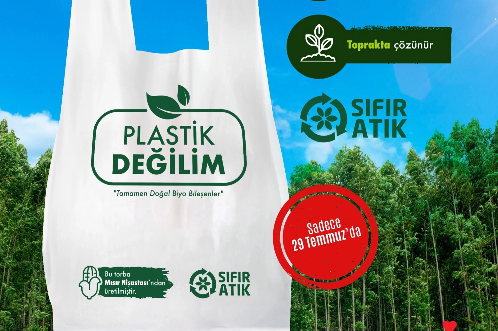 BİM, "Plastiksiz Temmuz" hareketine destek olmak ve sıfır atık hedefleri doğrultusunda önemli bir adım atarak, 29 Temmuz Pazartesi günü Türkiye'deki 11 binin üzerinde mağazasında müşterilerine mısır nişastasından üretilen çevre dostu torbaları hediye ediyor.