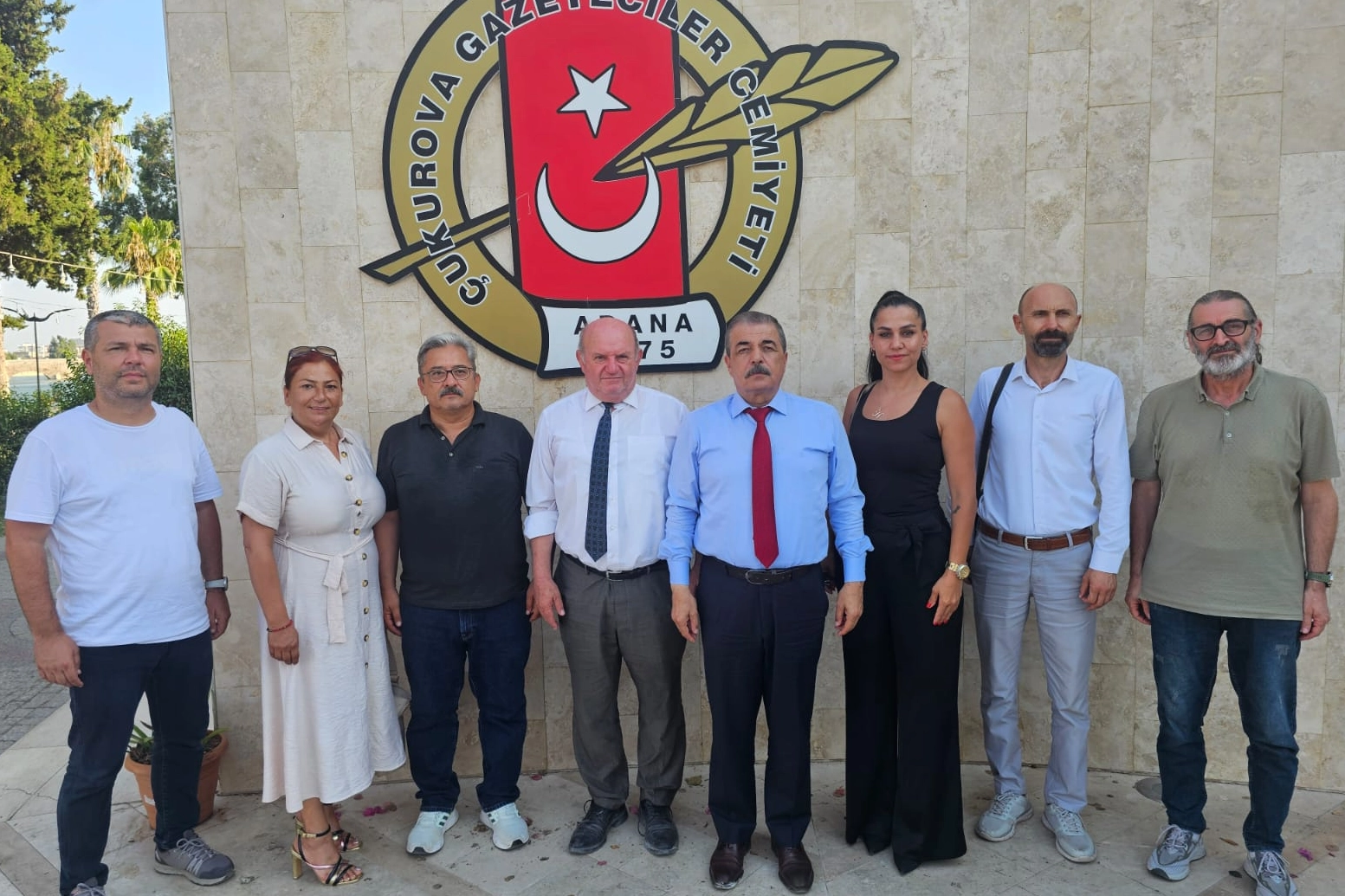 Ardından Çukurova Gazeteciler Cemiyeti’ne geçen heyet, burada da toplu sözleşme sürecine ilişkin görüş alışverişinde bulundu. Adana Büyükşehir Belediyesi önünde başlatılan Adalet Nöbeti’ne katılarak sürece destek verdi.